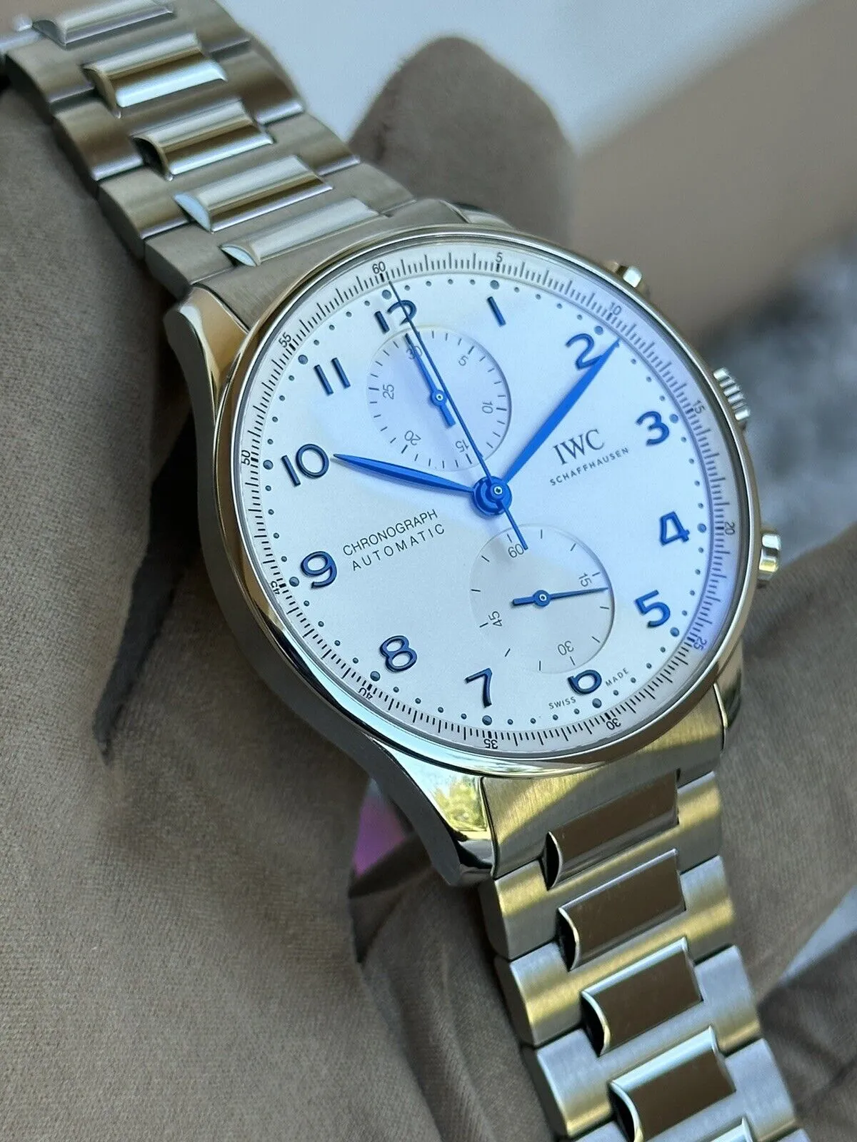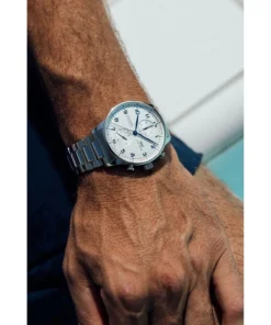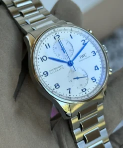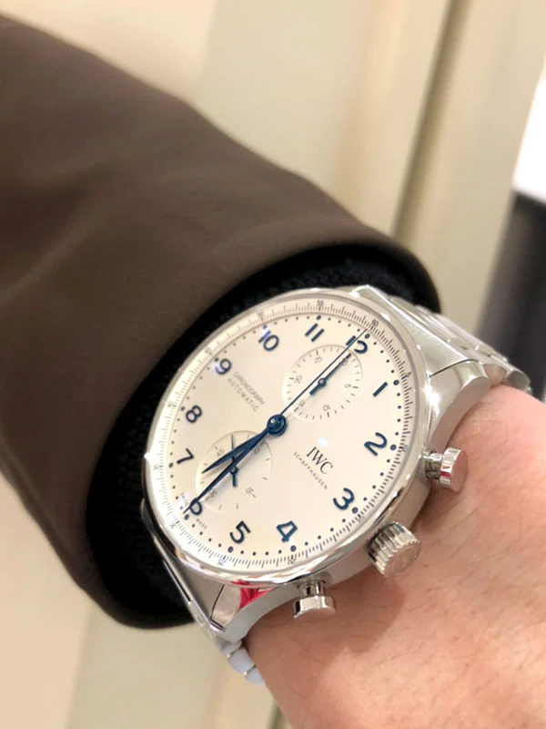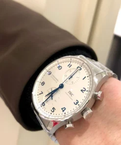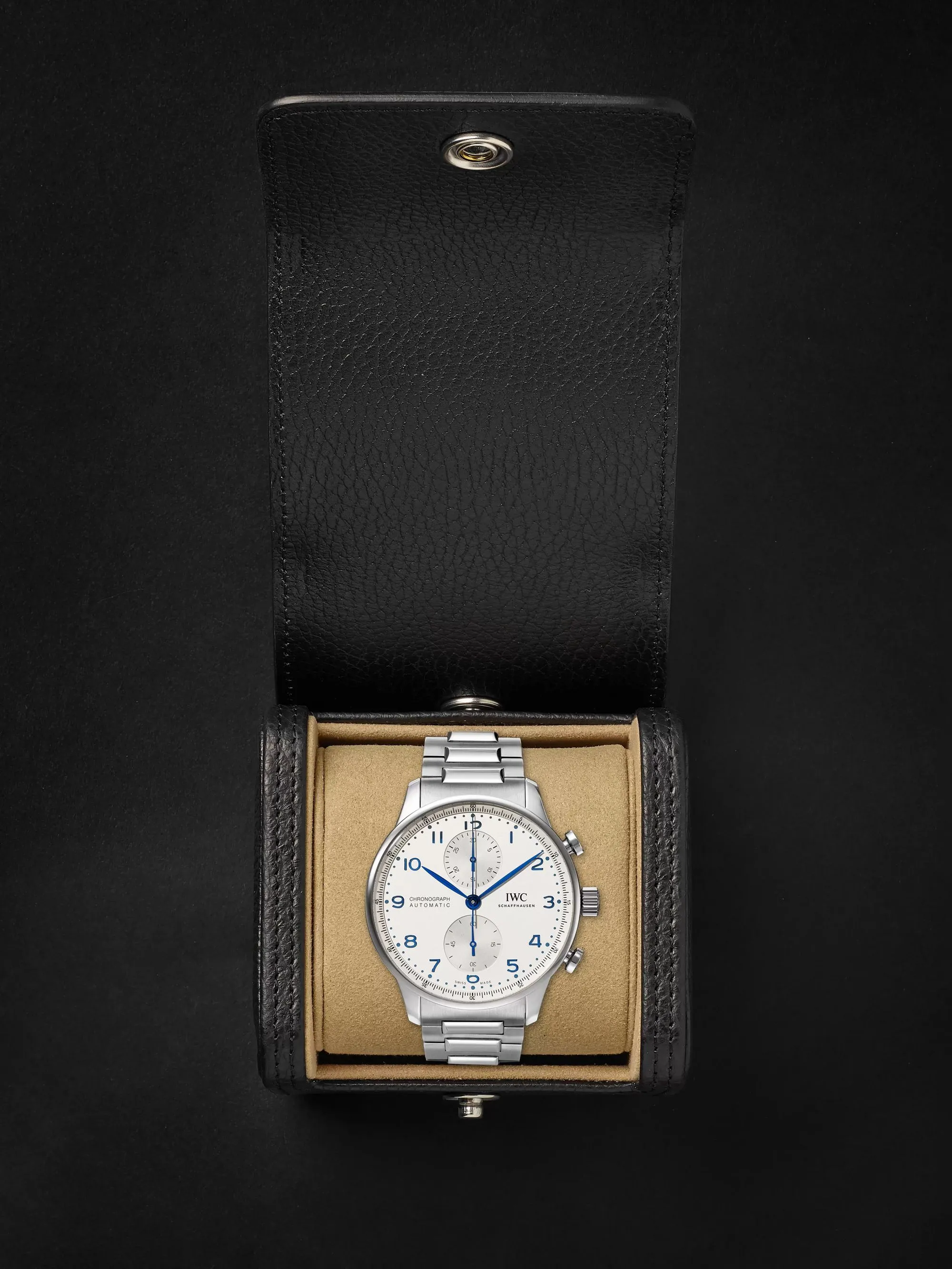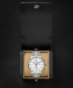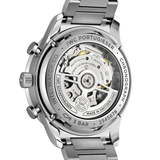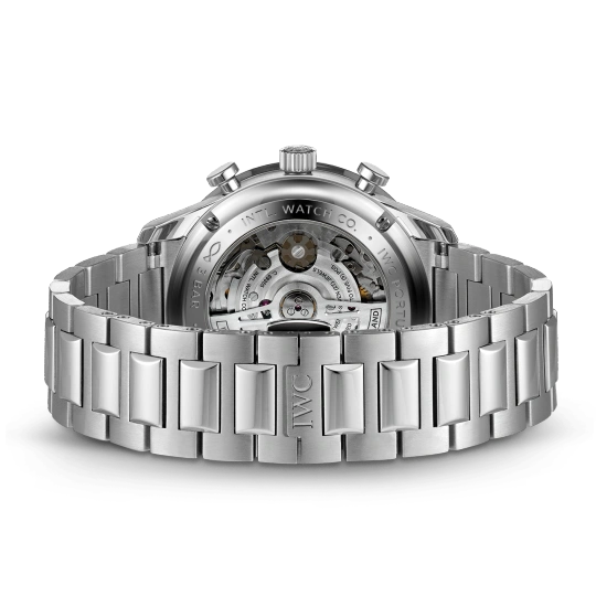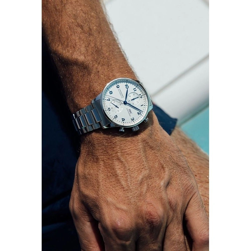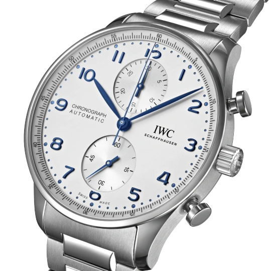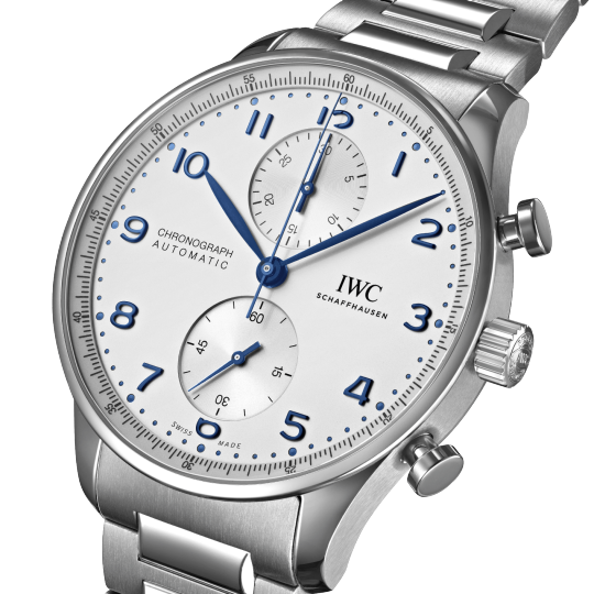 Inheriting the resolute and sporty style introduced by IWC Schaffhausen more than two decades ago, this IWC Portugieser men’s chronograph is now available for the first time with a stainless steel bracelet for a more refined look suitable for formal attire.